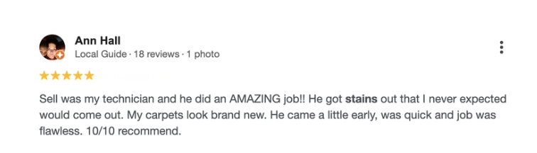 The note about Sell arriving early and being quick mattered too. A great carpet cleaning experience is never only about the floor. It is also about how the appointment feels from start to finish. Professional and trained technicians should bring both skill and calm to the visit. The process should feel easy to trust.